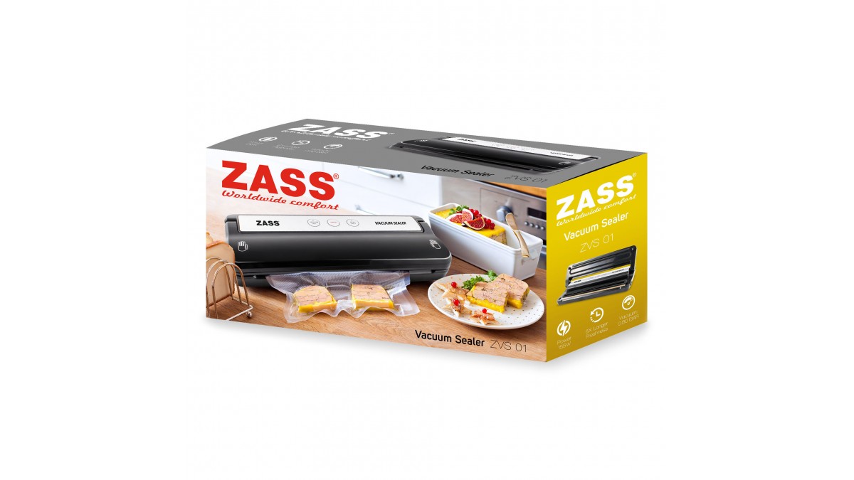 Include 5 buc. pungi fără BPA de mărimea 20cm x 30cm și 1 rulou mărimea 22cm x 5m.
