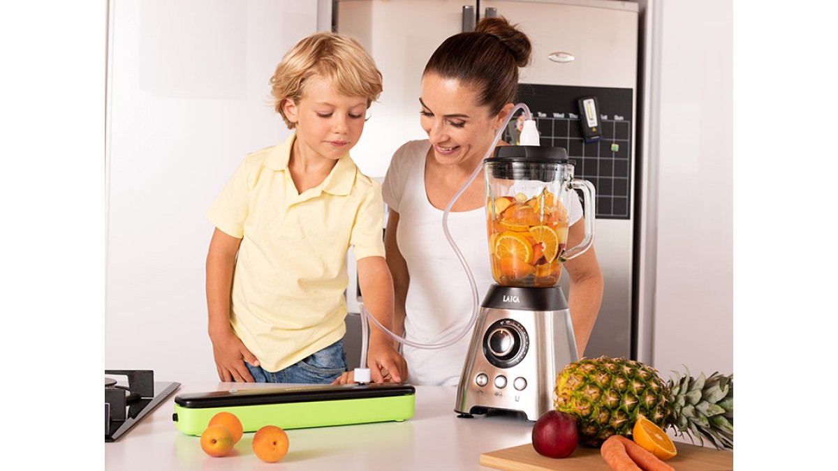 Datorită conectorului furnizat, puteți conecta aparatul de ambalat în vid* compatibil Laica la supapa de pe capacul blenderului și să scoateți aerul înainte de a face smoothie-urile. În acest fel veți putea păstra toate proprietățile nutritive și antioxidante ale ingredientelor și veți obține smoothie-uri cremoase și gustoase.
