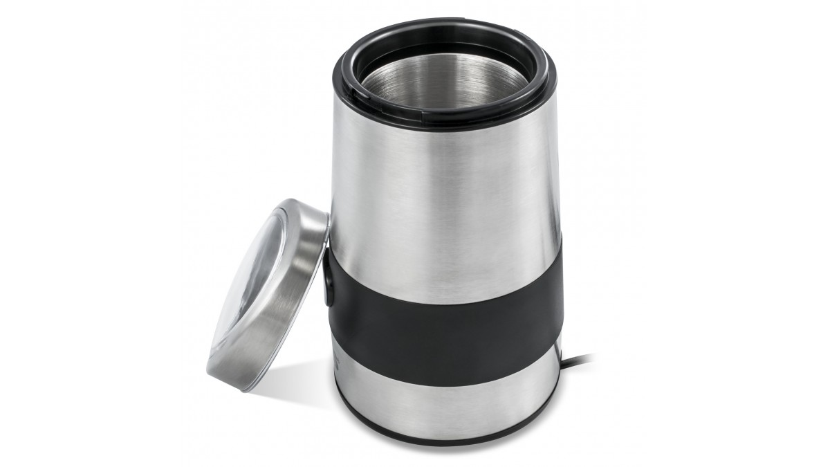 Caracteristici: Putere: 200 W. Culoare: inox. Capacitate: 60g (8 ceşti). Dimensiuni (cm): 13 x 19 x 13. Lungime cablu: 0,7 m. Alimentare: 220-240V, 50Hz/60Hz. Corp interior inox. Sistem de securitate la închidere. Buton pornit/oprit (sistem puls). Picioruşe cauciucate. Capac transparent. |
