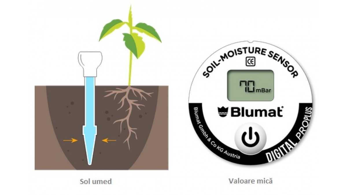 Odată introdus adânc în pământ, conul ceramic (senzorul) indică puterea de absorbție a rădăcinilor și o transmite sub formă valorică pe display-ul digital. Cu cât este mai ridicată valoarea indicată, cu atât este solul mai uscat în jurul rădăcinilor și în consecință planta are mai mare nevoie de apă.