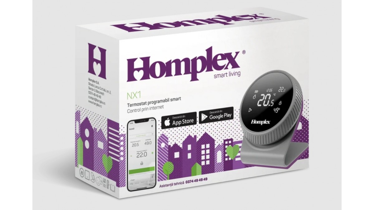 0771.767.312Termostat smart HOMPLEX NX1, programabil, fara fir